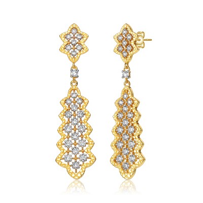 Guili Elegant Sterling Silver 14k Gold Plated Cubic Zirconia Pave Hoop Earrings with Sparkling Brilliant Shine