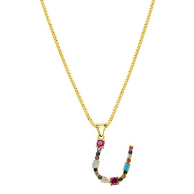 Adornia 14k Gold Plated Multi Color Stone Initial Necklace