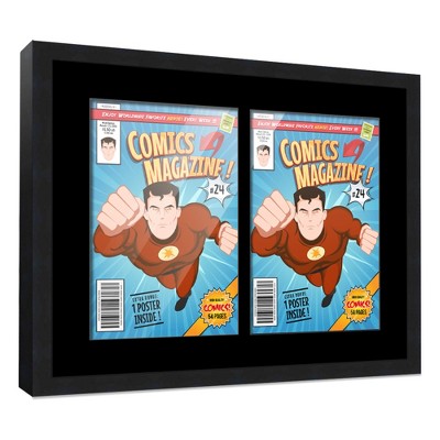 PosterPalooza | Comic Book Frame for 2 Silver Age Comics 1956 - 1970 - Black on Black Comic Frame - 14x18