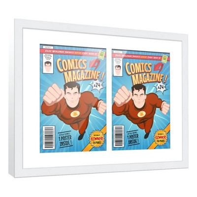 PosterPalooza | Comic Book Frame for 2 Current Era Comics -After 1985 - White on Black Comic Frame - 14x18