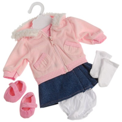 Constructive Playthings Out for the Day 18" Doll Clothing Set – 6-Piece Outfit with Pink Jacket, Top & Denim Skirt