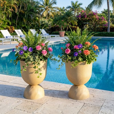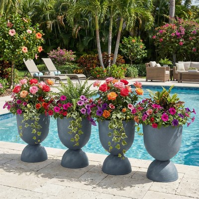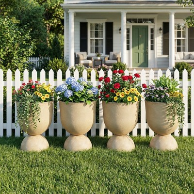 Dovelina Faux Stone PE Planters Modern Pedestal Planter Pots with Drainage Holes - 18"H/22"H, Blue/Beige, 2 PCs/4 PCs