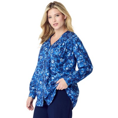 June + Vie by Roaman's Puff-Sleeve Button-Down Blouse