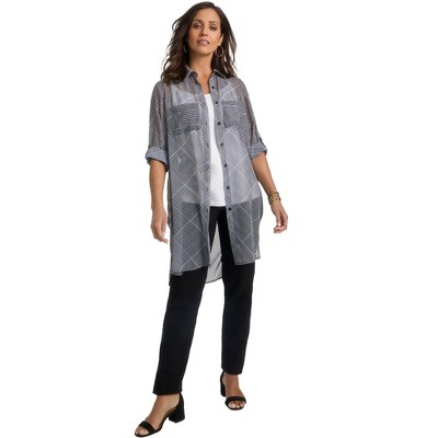 Roaman's Plus Size Tara Pleated Shirt – Adjustable 3/4 Sleeve Swing Tunic With Notch Collar