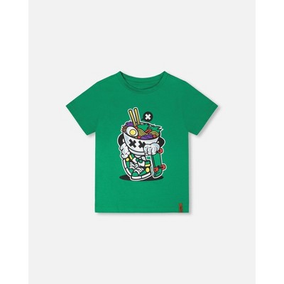 Deux par Deux Boy Organic Cotton Jersey T-Shirt with Print Green