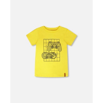 Deux par Deux Boy Organic Cotton Jersey T-Shirt with Gamer Print Yellow
