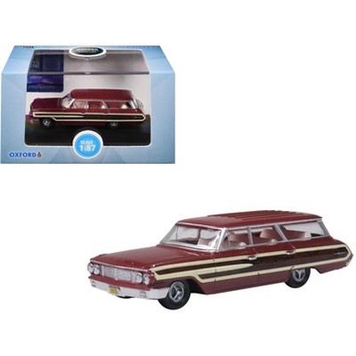 1964 Ford Country Station Wagon Squire Vintage Burgundy w/Woodgrain & White Interior 1/87 (HO) Diecast Model Car Oxford Diecast
