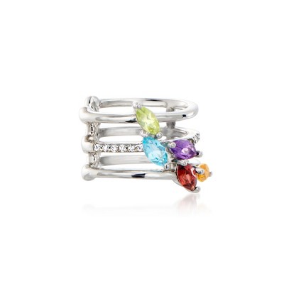 Ross-Simons 0.45 ct. t.w. Multi-Gemstone 3-Row Single Ear Cuff With Diamonds in Sterling Silver