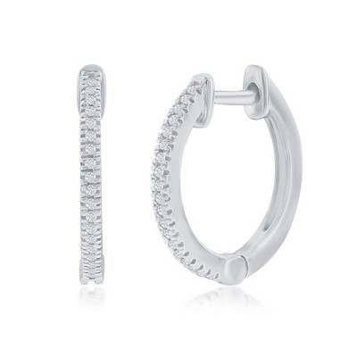 Diamonds D'Argento Sterling Silver,15mm Huggie Diamond Earrings - (38 Stones) - Silver