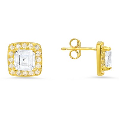 Sterling Silver Asscher-cut Halo CZ Stud Earrings