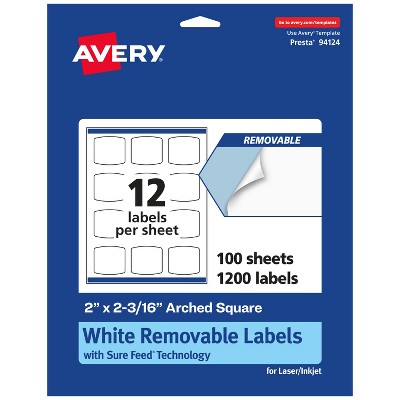 Avery Matte White Removable Arched Square Labels with Sure Feed Technology, Print-to-the-Edge, 2" x 2-3/16"