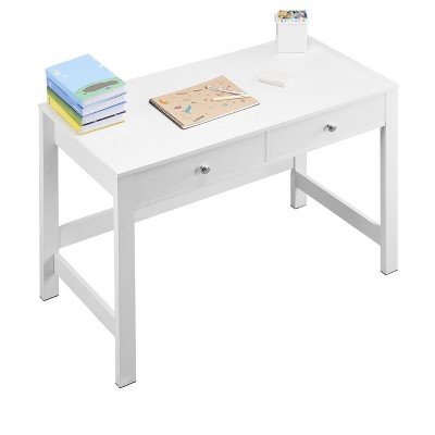 VEVOR Small Desk with Drawers, Kids Desk for Bedroom, Rectangle MDF Furniture Study Storage Table for Home, Office, White + Wood