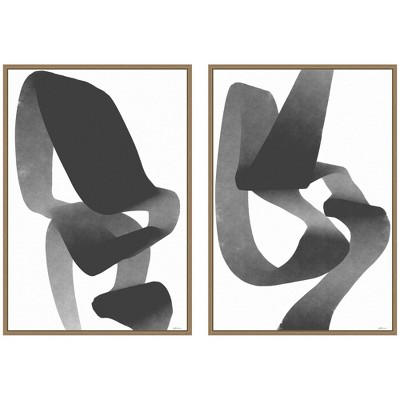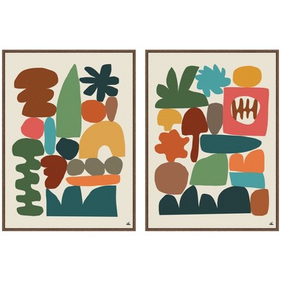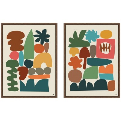 Kate and Laurel Balance 01 & 02 2 Piece Framed Canvas Wall Art Set by Gabrielly Guedes, Sylvie Walnut, 2 Piece Set 23x33