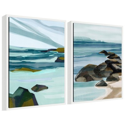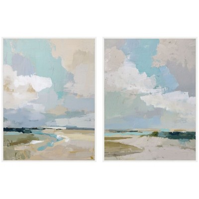 Kate and Laurel Sylvie Ocean Breeze Landscape - 2 Piece Framed Canvas Art Set by Nikita Jariwala, Sylvie White, 2 Piece Set 18x24