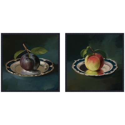 Kate and Laurel Plum Perfect & Just Peachy 2 Piece Framed Canvas Wall Art Set by Mary Sparrow, Sylvie Beaded Black, 2 Piece Set 22x22