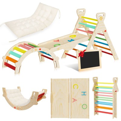 Pikler Triangle Set 7-in-1 Foldable Montessori Wooden Climbing Toys for Toddlers 1-5 Years Indoor Jungle Gym with Slide, Arch Ladder