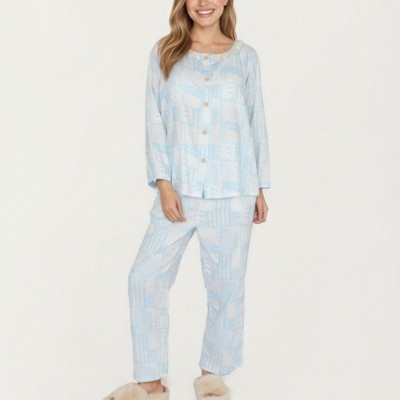 Anna-Kaci Lounge Women's 2-Piece Set Long Sleeve Button Front Top and Relaxed Fit Pants Pajama Set with Floral Print