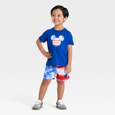 Toddler Boys' 2pc Mickey Mouse Americana Flag T-Shirt and Shorts Set - Blue