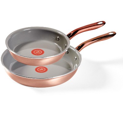T-fal 2 Piece Ceramic Nonstick Fry Pan Set, Rose Gold