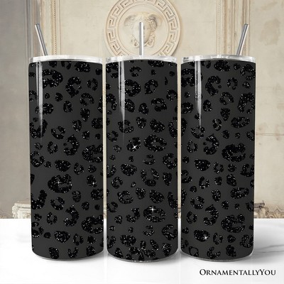 Black Glitter Leopard Print 20oz Tumbler With Lid and Stainless Steel Straw, Bold Animal Pattern Gift Cup | OrnamentallyYou