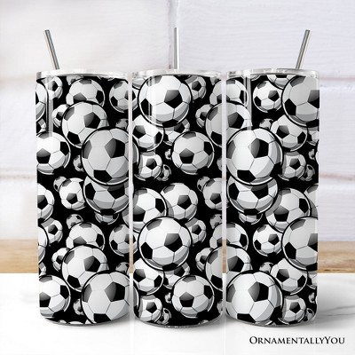 Black and White Soccer Ball 20oz Tumbler With Lid and Stainless Steel Straw, Football Sports Print Gift Cup | OrnamentallyYou