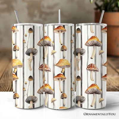 Vintage Woodland Mushroom Pattern 20oz Personalized Tumbler With Lid and Stainless Steel Straw, Forest Forager Nature Gift Cup Multicolored 20 oz
