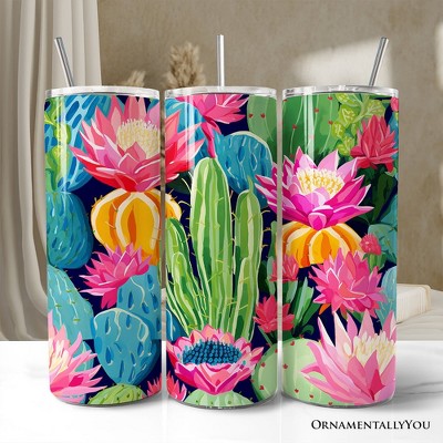 Blooming Desert Cactus Garden 20oz Tumbler With Lid and Stainless Steel Straw, Colorful Succulent Floral Gift Cup | OrnamentallyYou