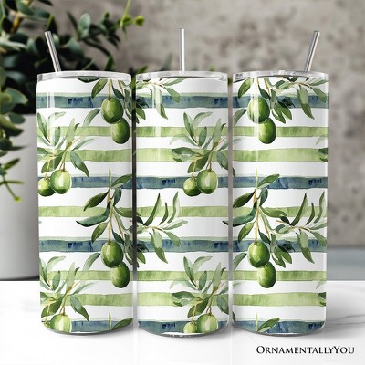 Green Olive Branch Print 20oz Tumbler With Lid and Stainless Steel Straw, Fresh Botanical Gift Cup | OrnamentallyYou
