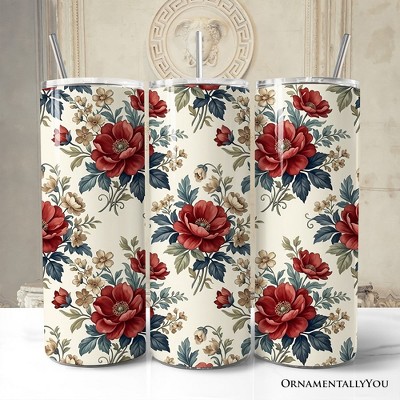 Vintage Red Poppy 20oz Tumbler With Lid and Stainless Steel Straw, Romantic Floral Pattern Gift Cup | OrnamentallyYou