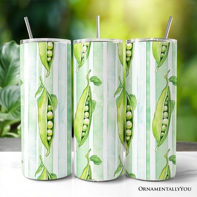 Fresh Green Pea Pod Pattern 20oz Personalized Tumbler With Lid and Stainless Steel Straw, Watercolor Garden Vegetable Gift Cup Multicolored 20 oz