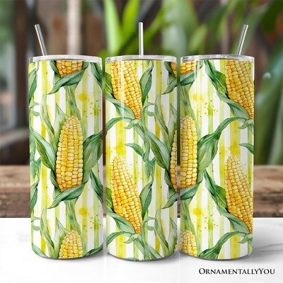 Farm Fresh Corn Pattern 20oz Tumbler With Lid and Stainless Steel Straw, Rustic Country Harvest Gift Cup | OrnamentallyYou