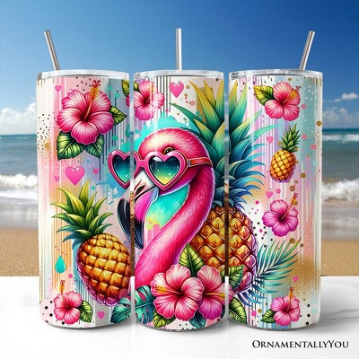 Tropical Flamingo Pineapple Hibiscus 20oz Tumbler With Lid and Stainless Steel Straw, Colorful Summer Bird Gift Cup | OrnamentallyYou
