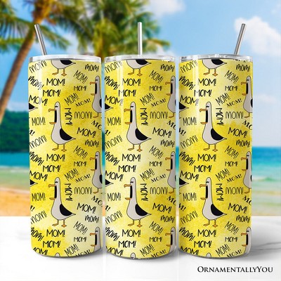 Funny Seagull Mom Call Pattern 20oz Tumbler With Lid and Stainless Steel Straw, Coastal Bird Humor Gift Cup | OrnamentallyYou