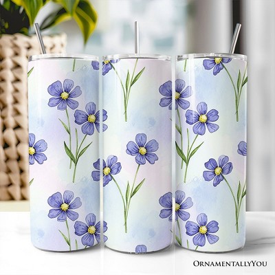 Delicate Blue Wildflowers 20oz Tumbler With Lid and Stainless Steel Straw, Soft Pastel Floral Pattern Gift Cup | OrnamentallyYou