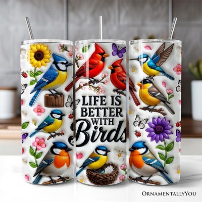 Inflated Life Is Better With Birds 20oz Tumbler With Lid and Stainless Steel Straw, Colorful Birdwatcher Gift Cup | OrnamentallyYou