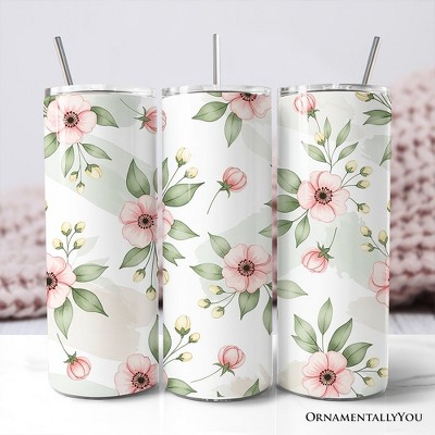 Soft Pink Wildflower 20oz Tumbler With Lid and Stainless Steel Straw, Elegant Floral Pattern Gift Cup | OrnamentallyYou