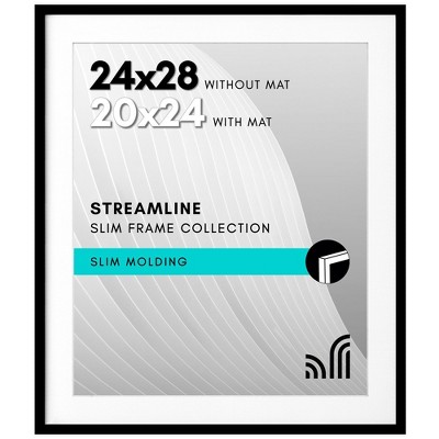Americanflat 24x28 Picture Frame with Polished Plexiglass, Use as 20x24 Frame with Mat or 24x28 Frame Without Mat, Streamline Collection, , Black