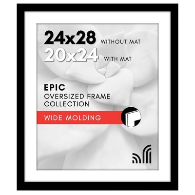 Americanflat 24x28 Picture Frame with Polished Plexiglass, Use as 20x24 Frame with Mat or 24x28 Frame Without Mat, Epic Collection, Black