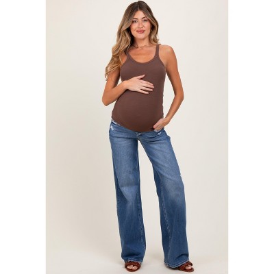 Pinkblush Blue Lightly Distressed Wide Leg Maternity Jeans