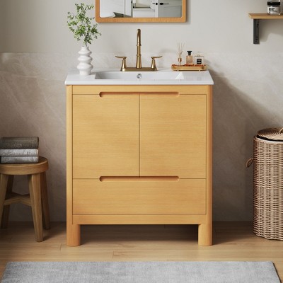 Gulches Modern Minimalist Bathroom Vanity, Solid Wood Frame, Amber Storage, 30" Independent Cabinet