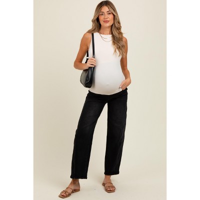 Pinkblush Black Lightly Distressed Panel Detail Maternity Barrel Jeans