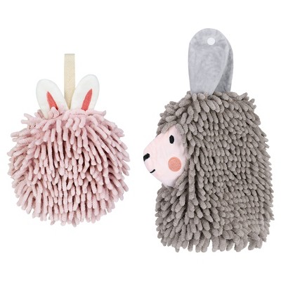 REGALWOVEN 2 Packs Cute Cartoon Alpaca Fuzzy Ball Hand Drying Hanging Ball Towels for Bathroom 7" x 7"/7" x 11"