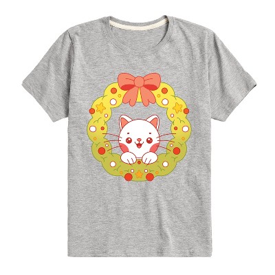 Boys' - Instant Message - Christmas Chibi Cat Wreath Short Sleeve Graphic T-Shirt
