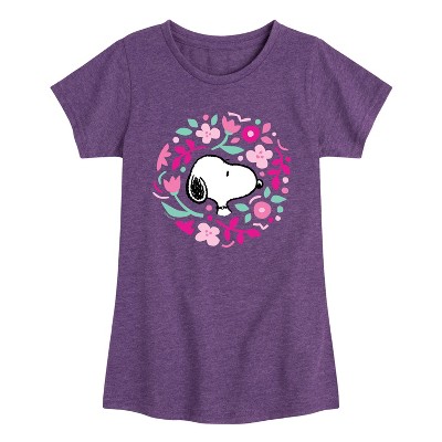 Girls' - Peanuts - Snoopy Valentine Floral Circle Fitted Short Sleeve Graphic T-Shirt
