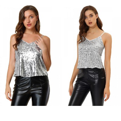 Allegra K Women's Sequined Shining Adjustable Straps Party Sparkle Cami Top 2 Packs