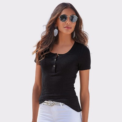 Women's Ribbed Henley Top - LASCANA