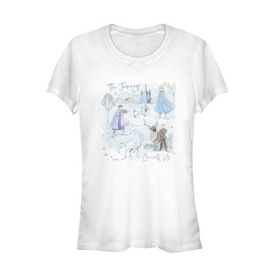 Juniors Womens Frozen 2 Journey Watercolor T-Shirt