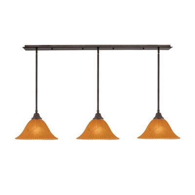 Toltec Lighting Any 3 - Light Chandelier in Bronze with 7" Teal Crystal Shade