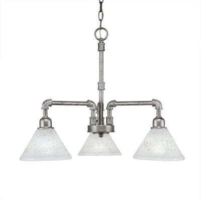 Toltec Lighting Vintage 3 - Light Chandelier in Aged Silver with 7" Gold Ice Shade