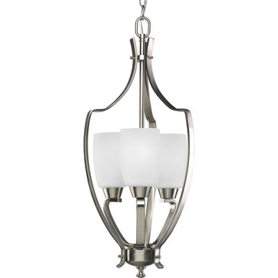 Progress Lighting Joy Collection 3-Light Chandelier, Brushed Nickel, Etched White Fluted Glass